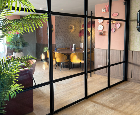 Voor restaurant Sebas in Herpen hebben we stalen deuren geplaatst als afscheiding tussen twee ruimtes. Zo ontstond er een duidelijke scheiding, zonder dat het open en lichte gevoel verloren ging.